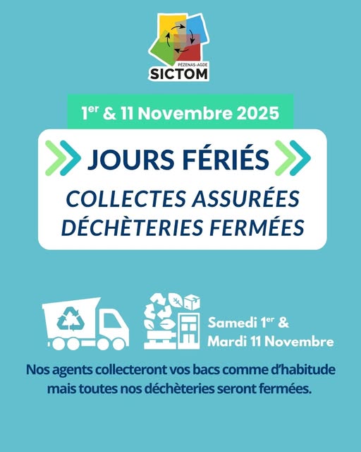 COLLECTES ET DÉCHÈTERIES DU 1er & 11 NOVEMBRE 2025