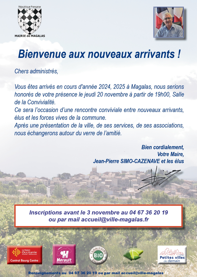 La soirée d’accueil des nouveaux habitants se tiendra le jeudi 20 novembre 2025 à partir de 19h, salle de la convivialité.