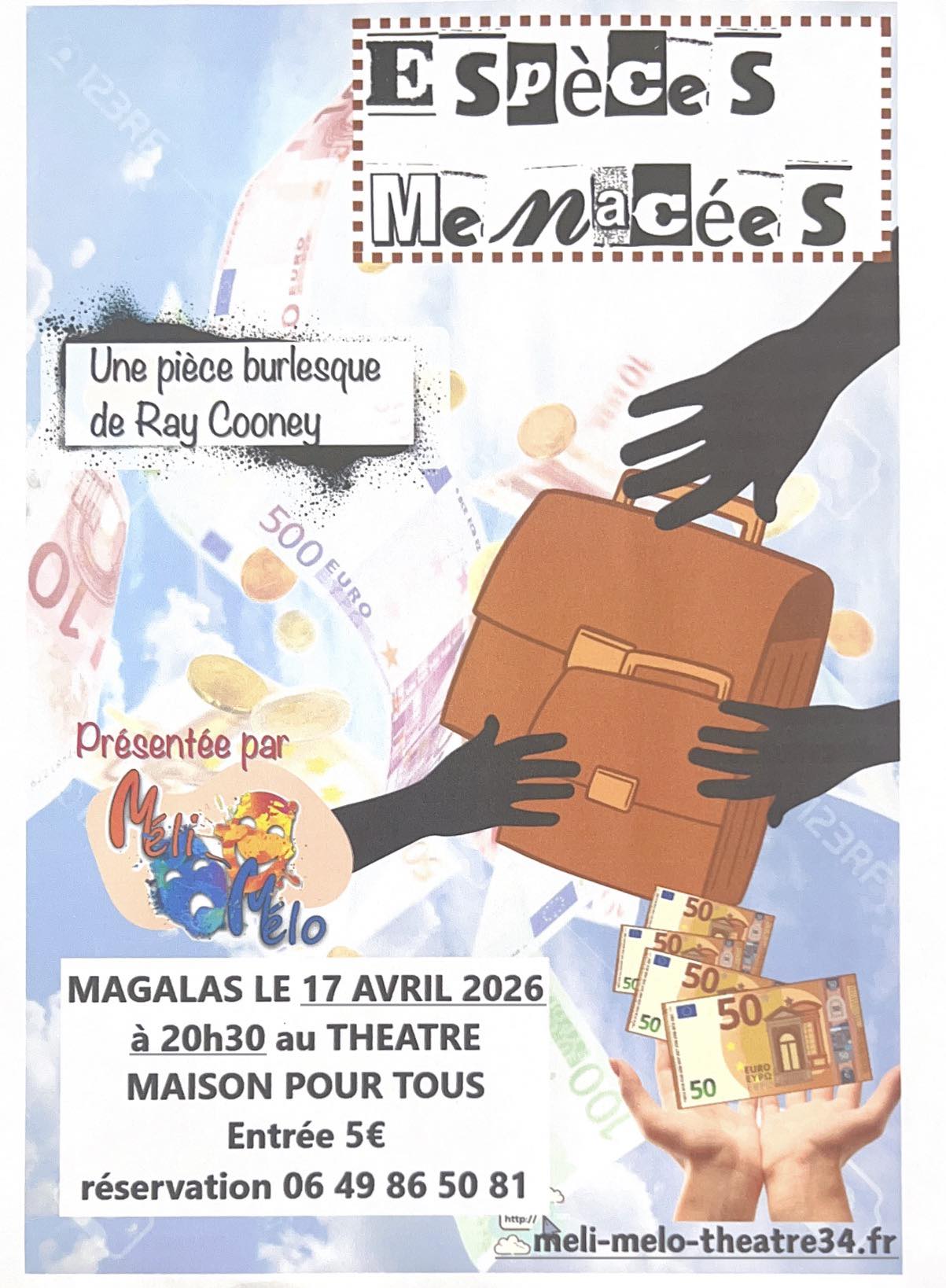 La maison pour tous vous propose le vendredi 17 avril à 20h30 une pièce de théâtre intitulée « Espèces menacées » Entrée : 5€ Réservation : 06 49 86 50 81