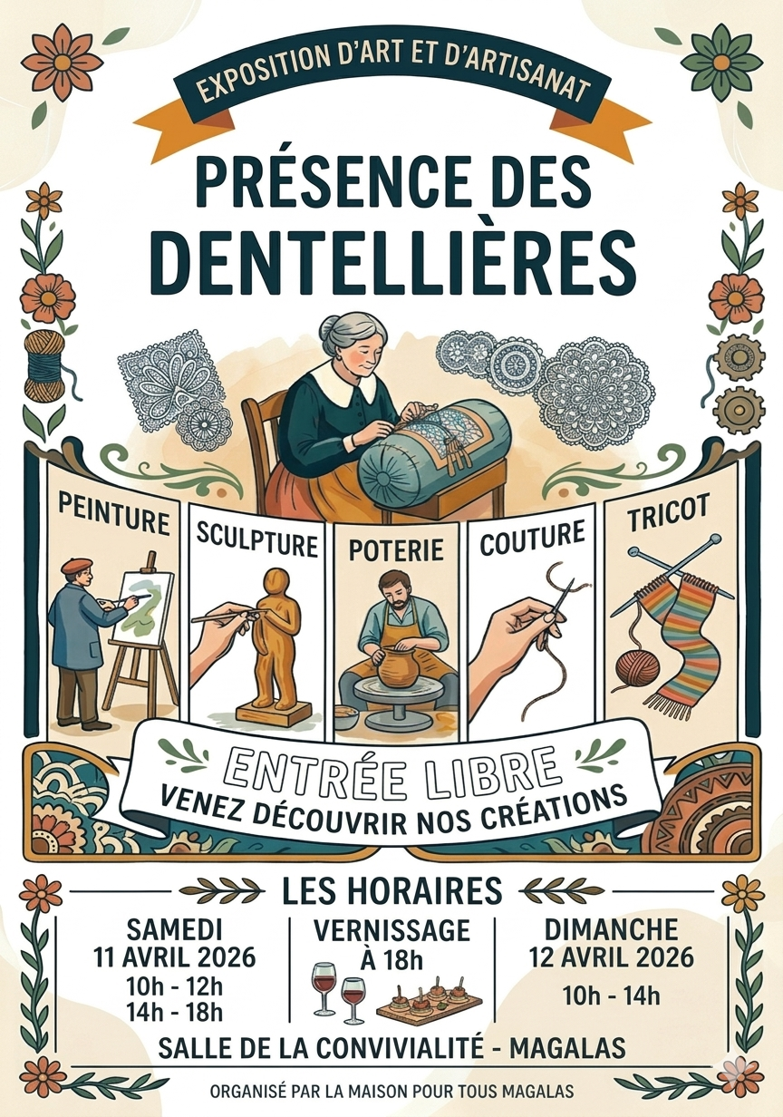 Exposition d’Art et d’Artisanat organisée par la Maison Pour Tous avec la participation des dentellières de Magalas.